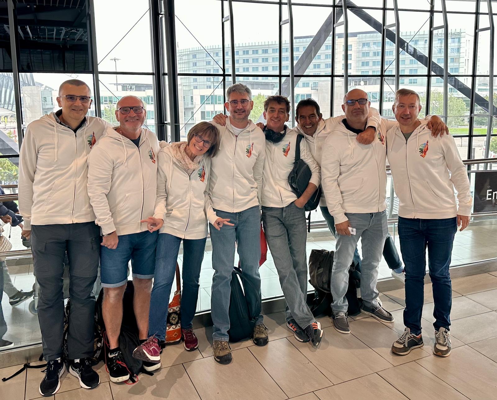 J-7 - Les derniers préparatifs Sur la base du Grand Large à Meyzieu a eu lieu le dernier rassemblement avant notre départ pour la Corse. Dans la joie et la bonne humeur, nous sommes à nouveau tous prêts pour le départ. Les vélos sont fins prêts, Roland nous a fait découvrir sa bouée pour traverser les bras de mer (susprise à venir) Rémi a révisé son vocabulaire "E....é" Pascale et Sayen prêtes à prendre le volant Marie Pierre en oublie son genou récalcitrant Roland nous a fait admirer sa dextérité sur son foil Ci dessus, notre parcours - 500 kms et 15 000+